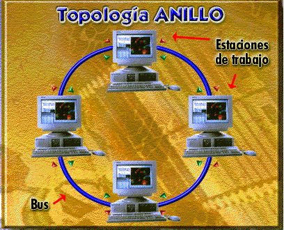 Los nodos de la red se disponen en un anillo cerrado conectados a él mediante enlaces punto a punto. La información describe una trayectoria circular en una única dirección y el nodo principal es quien gestiona conflictos entre nodos al evitar la colisión de tramas de información. En este tipo de topología, un fallo en un nodo afecta a toda la red aunque actualmente hay tecnologías que permiten mediante unos conectores especiales, la desconexión del nodo averiado para que el sistema pueda seguir funcionando. La topología de anillo esta diseñada como una arquitectura circular, con cada nodo conectado directamente a otros dos nodos. Toda la información de la red pasa a través de cada nodo hasta que es tomado por el nodo apropiado. Este esquema de cableado muestra alguna economía respecto al de estrella. El anillo es fácilmente expandido para conectar mas nodos, aunque en este proceso interrumpe la operación de la red mientras se instala el nuevo nodo. Así también, el movimiento físico de un nodo requiere de dos pasos separados: desconectar para remover el nodo y otra vez reinstalar el nodo en su nuevo lugar.